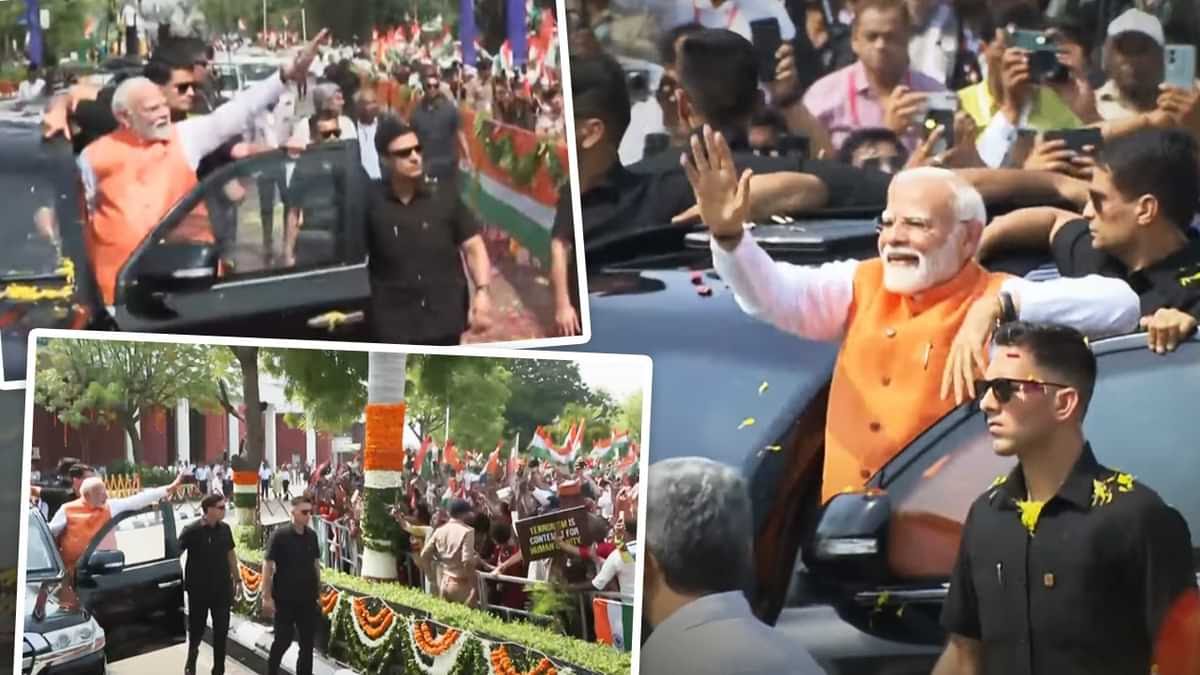 पीएम मोदी ने अपने दौरे की शुरुआत वडोदरा से की. यहां वे रोड- शो कर रहे हैं. आस पास मौजूद भीड़ ऑपरेशन सिंंदूर के पोस्टरों के साथ उनका स्वागत कर रही है. कई जगहों पर महिलाएं पीएम मोदी का ऑपरेशन सिंदूर के लिए धन्यवाद भी कर रही हैं. पीएम के इस रोड शो के दौरान कई स्टेज सजाए गए हैं. जिनमें ऑपरेशन सिंंदूर की झलक देखने को मिल रही है.